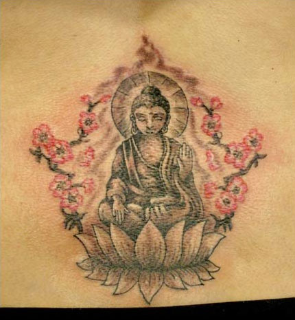 Buddhist tattoo are often seen alongside flower designs, specially the lotus flower.